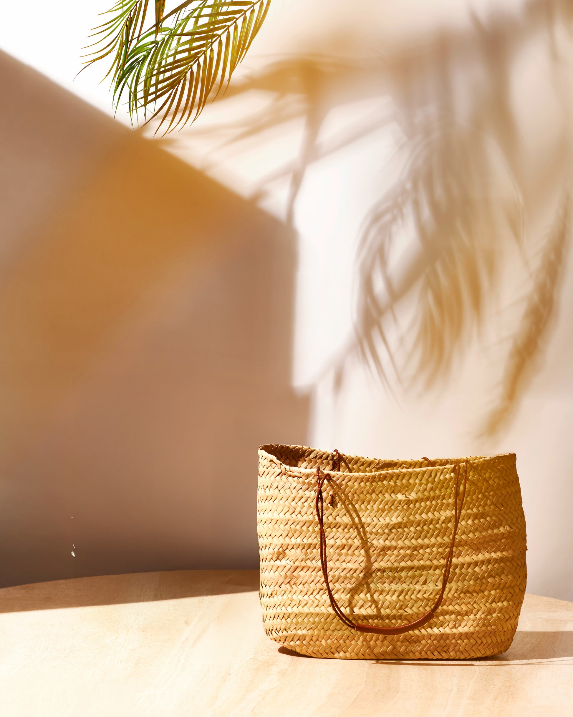 Stroh-Tasche mit feiner Rattan-Verarbeitung und eleganten Ledergriffen. Die Kombination aus natürlichen Materialien und hochwertiger Verarbeitung macht sie zu einem stilvollen und praktischen Begleiter für jede Gelegenheit.